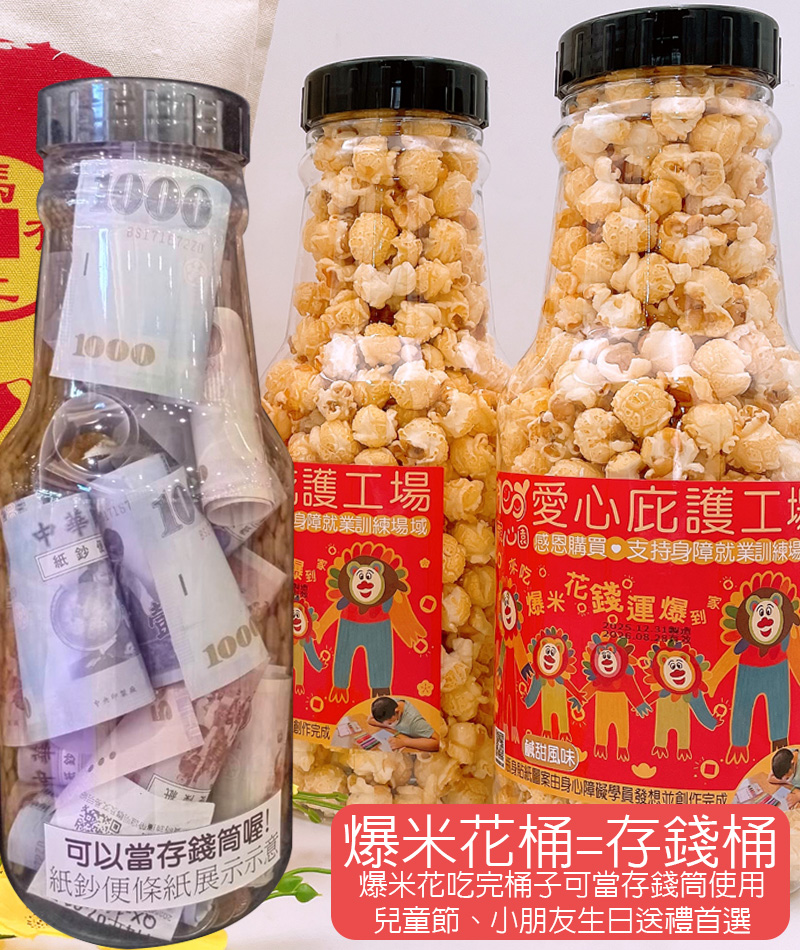 品名:馬上有錢爆米花存錢筒260公克二罐+限量 馬上有錢帆布提袋乙個